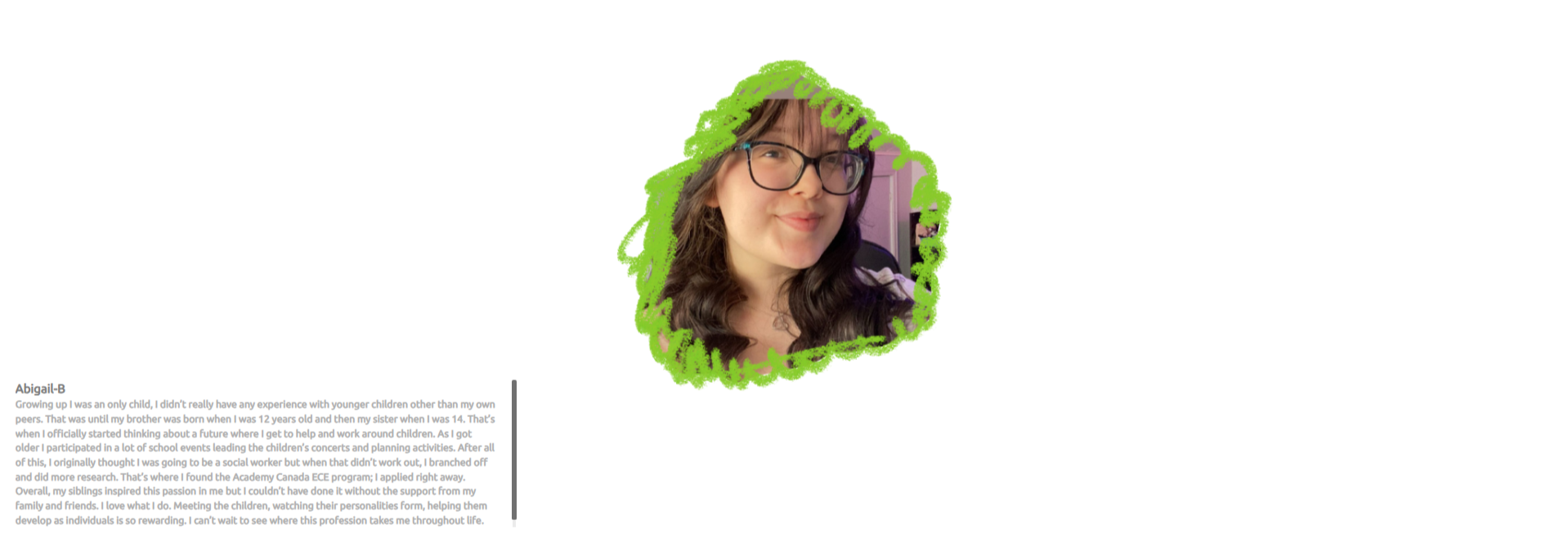 Click the icons below to discover more about some of our incredibly passionate Early Childhood Education students!